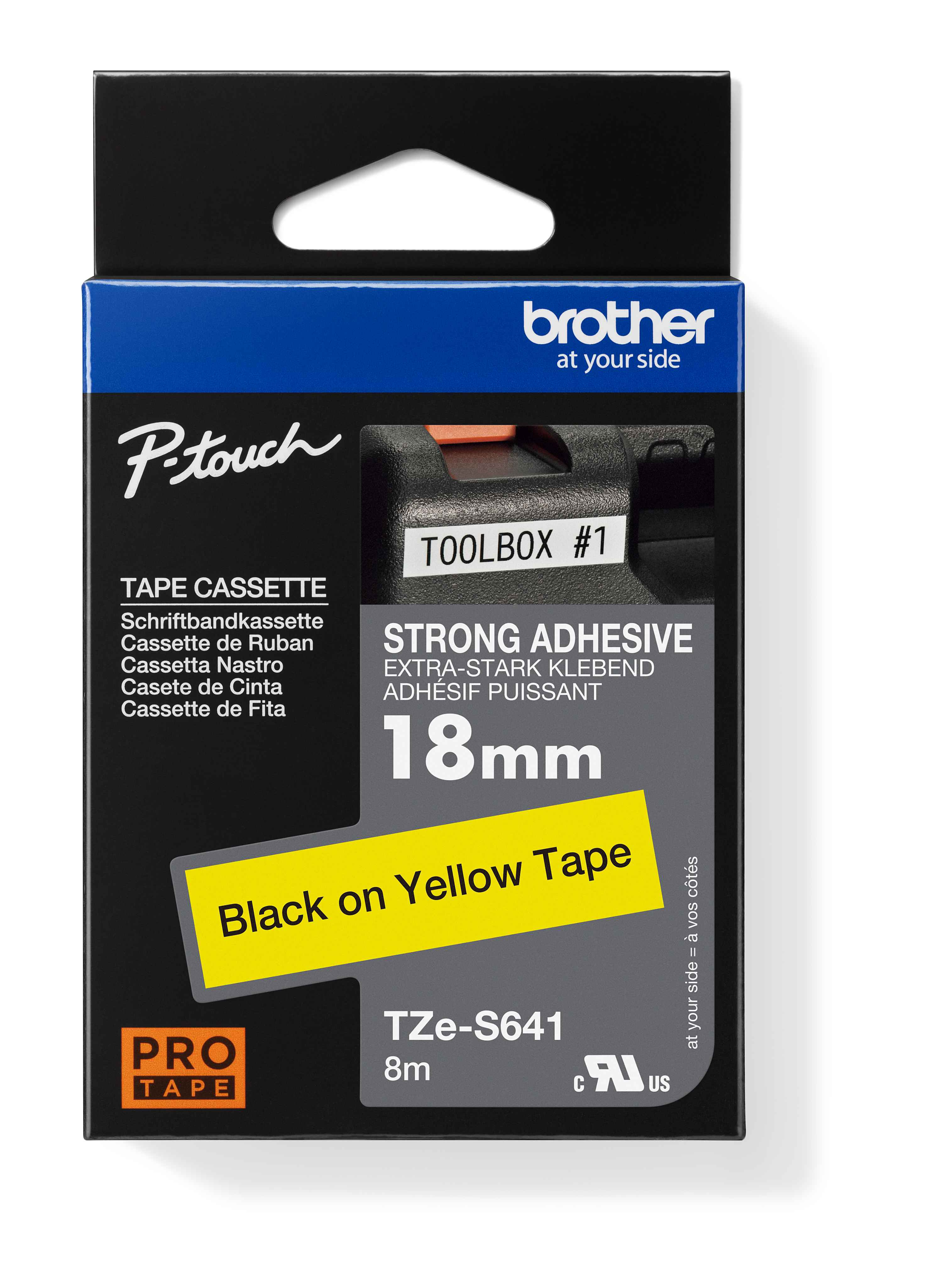 Originální kazeta s laminovanou páskou TZe-S641 kompatibilní s širokou řadou tiskáren Brother P-touch je zvláště všestranná díky své snadno čitelné černé a žluté barvě - ideální pro domácnost domácnosti, kancelář a další pracoviště.