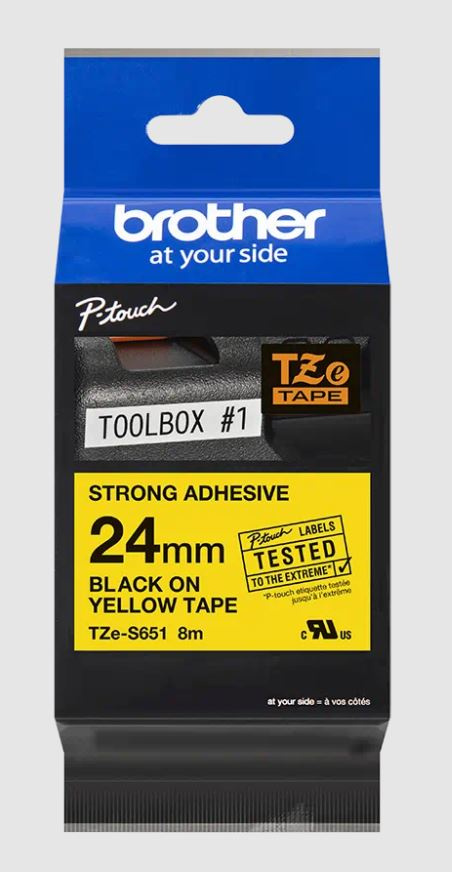 Originální kazeta s laminovanou páskou TZe-S651 kompatibilní s širokou řadou tiskáren Brother P-touch je zvláště všestranná díky své snadno čitelné černé a žluté barvě - ideální pro domácnost domácnosti, kancelář a další pracoviště.