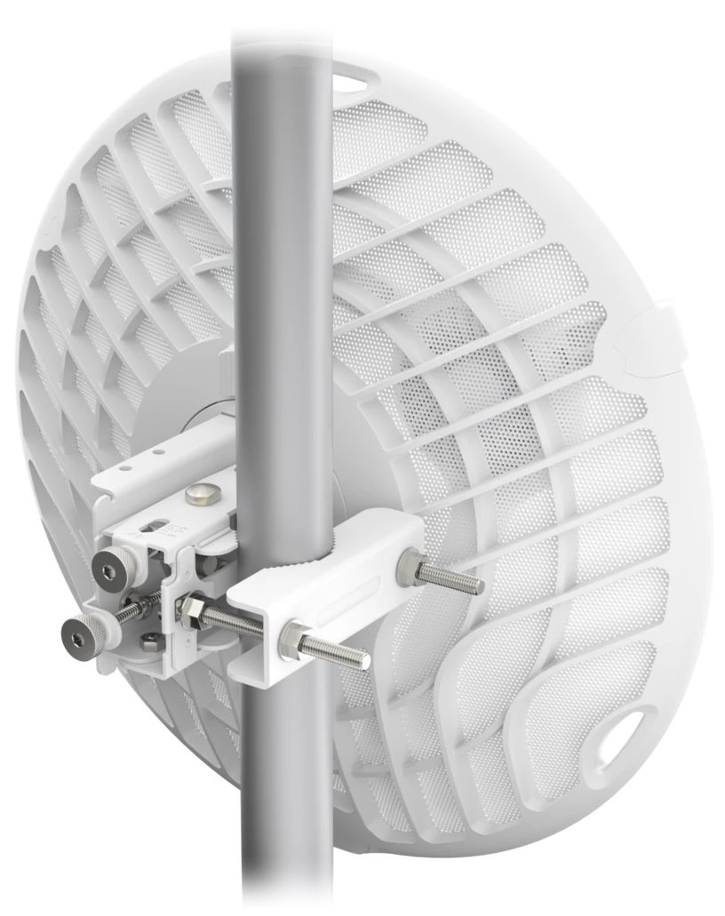 Popis produktu Precizní držák 60G-PM pro 60GHz pojítka AirFiber 60 (LR) a GigaBeam LR od Ubiquiti Networks. Držák poskytuje jemné ladění antény v horizontální i vertikální rovině a to za pomocí dvou šroubků s možností ručního ladění bez jakéhokoliv nástroje.
