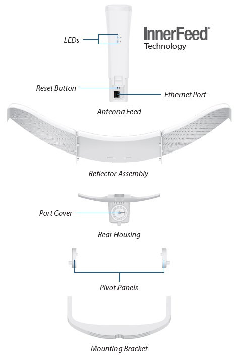 LiteBeam 5AC-LR kombinuje proprietární hardwarové a softwarové technologie do cenově dostupného zařízení. Mezi výhody patří InnerFeed technologie, airMAX TDMA protokol, vylepšený držák a vestavěná vodováha umožňující velmi rychlé a správné nasazení a také velmi kompaktní rozměry pro úsporu nákladů při přepravě. Technici jistě ocení nově obsažené 2,4GHz WiFi rozhraní, které slouží k administraci skrze mobilní zařízení. K dispozici je aplikace UMOBILE pro Android i iOS.