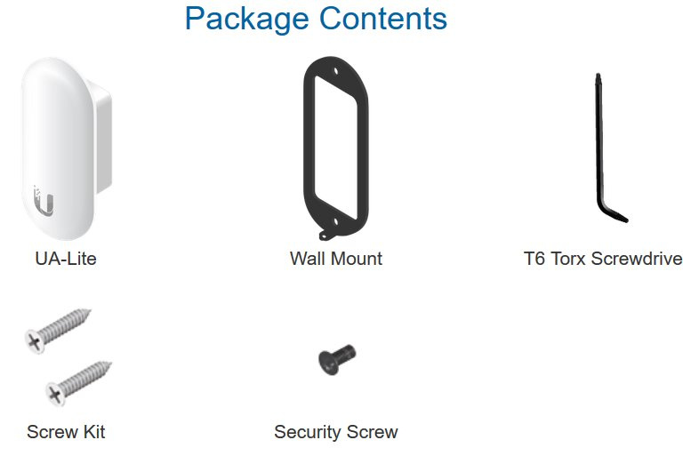Obsah balení Zařízení (UA-Lite) Držák na zeď Torx šroubovák, šroubky