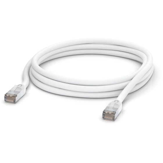 Odolný venkovní patch kabel UniFi je navržený tak, aby fungoval v nejdrsnějších podmínkách. Kabel je třídy Cat.5e s délkou 3m, stíněním typu STP, má vnitřní stínící fólii, ESD drát, odolnou venkovní izolaci bílé barvy z termoplastického elastomeru proti povětrnostním vlivům a je zakončen stíněnými RJ45 konektory na obou stranách.