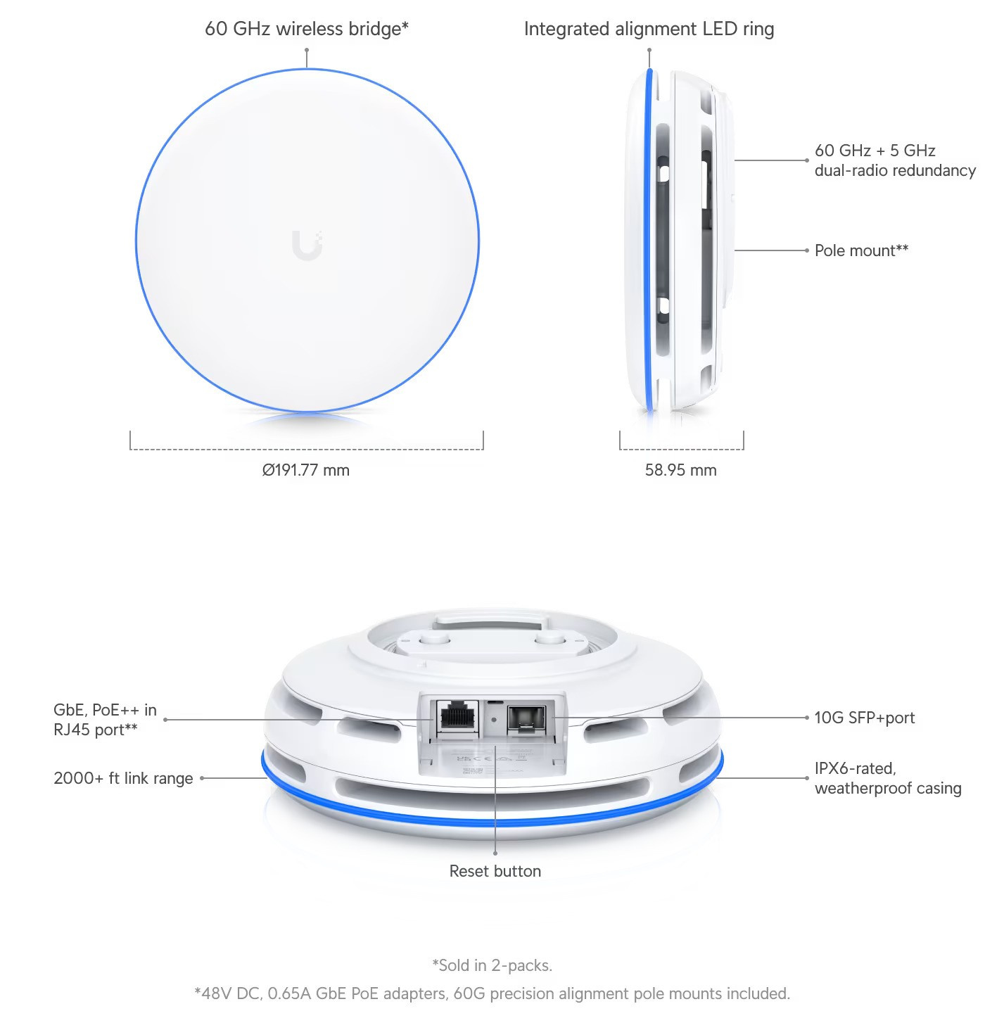 Zařízení je vybaveno Gigabitovým LAN portem s podporou PoE, jedním SFP+ portem a Bluetooth pro jednoduché nastavení přes UniFi Network app z mobilu.