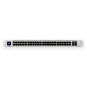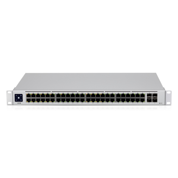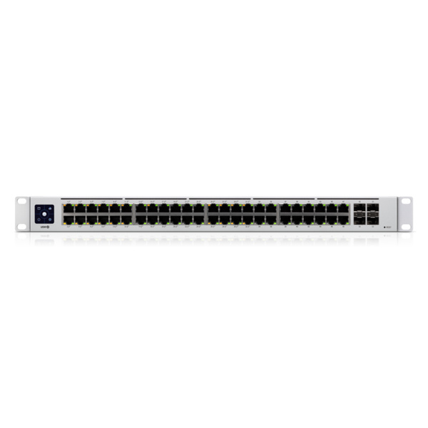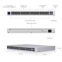 USW-48-POE je managovatelný Gigabitový L2 switch s 48x Gigabit LAN porty, z čehož 32 portů podporuje 802.3af/at PoE-Out, celkovým PoE Budgetem 195W a čtveřicí portů SFP s maximální přenosovou rychlostí 1Gb/s. Switch má kromě standardní výbavy také 1,3" dotykový displej pro poskytování informací o systému, teplotě, statistice portů, PoE napájení a mnoho dalšího.