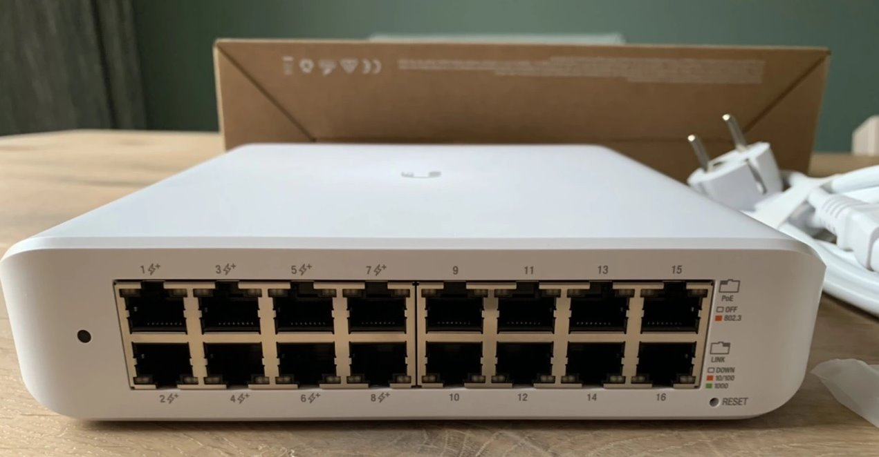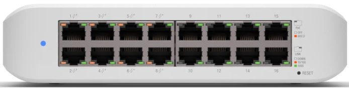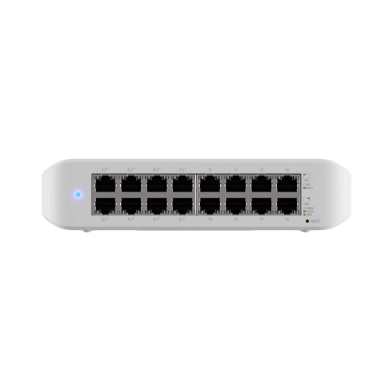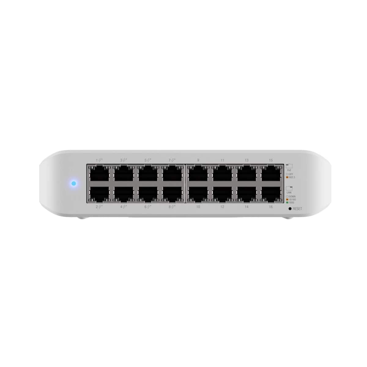 USW-Lite-16-PoE je Gigabitový PoE L2 Switch od Ubiquiti v desktop provedení s maximálním PoE budgetem 45W. Managovatelný switch s 16 Gigabit metalickými porty a celkovou propustnost 16Gb/s. Pouze 8 portů z 16ti podporuje PoE napájení 802.3af/at s maximálním výkonem 30W/port. Switch je díky nízkému PoE budgetu vhodný spíše jako datový s napájením pár zařízení na okraji sítě.
