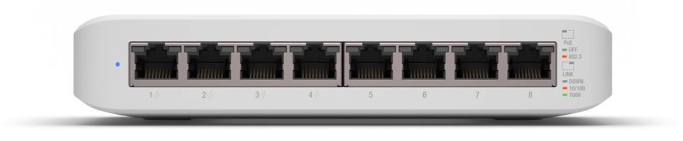 USW-Lite-8-PoE je Gigabitový PoE L2 Switch od Ubiquiti v desktop provedení s maximálním PoE budgetem 52W. Managovatelný switch s 8 Gigabit metalickými porty a celkovou propustnost 16Gb/s. Pouze 4 porty z 8 podporuje PoE napájení 802.3af/at s maximálním výkonem 30W/port. Switch je díky nízkému PoE budgetu vhodný spíše jako datový s napájením pár zařízení na okraji sítě.