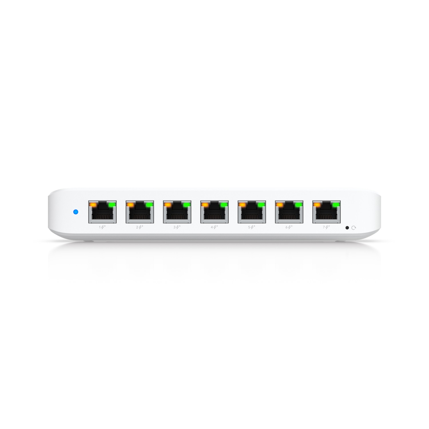 Technické parametry Rozhraní pro správu: Ethernet In-Band Síťové rozhraní: 8x GbE RJ45 PoE rozhraní: 7x PoE/PoE+ (piny 1, 2+; 3, 6-) Celková neblokující propustnost: 8Gb/s Kapacita switche: 16Gb/s Způsob napájení: * 54V/1,1A napájecí adaptér (součást balení) * PoE++ (piny 1, 2+; 3, 6- a 4, 5+; 7, 8-) Zdroj napájení: 54V, externí, 1,1A/60W Podporovaný rozsah napětí: 44-57V DC Max. spotřeba energie: * 9W se vstupem PoE (bez PoE výstupu) * 8W se vstupem AC adaptéru (bez PoE výstupu) Max. PoE+ výkon na port: 30W Provozní teplota: -20 až 45°C