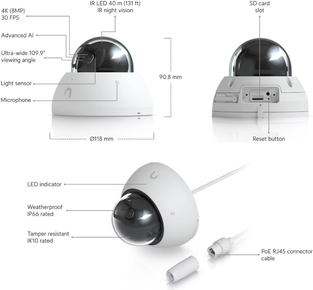 Popis Ubiquiti UVC-AI-Dome-W - UniFi Protect Camera AI Dome white