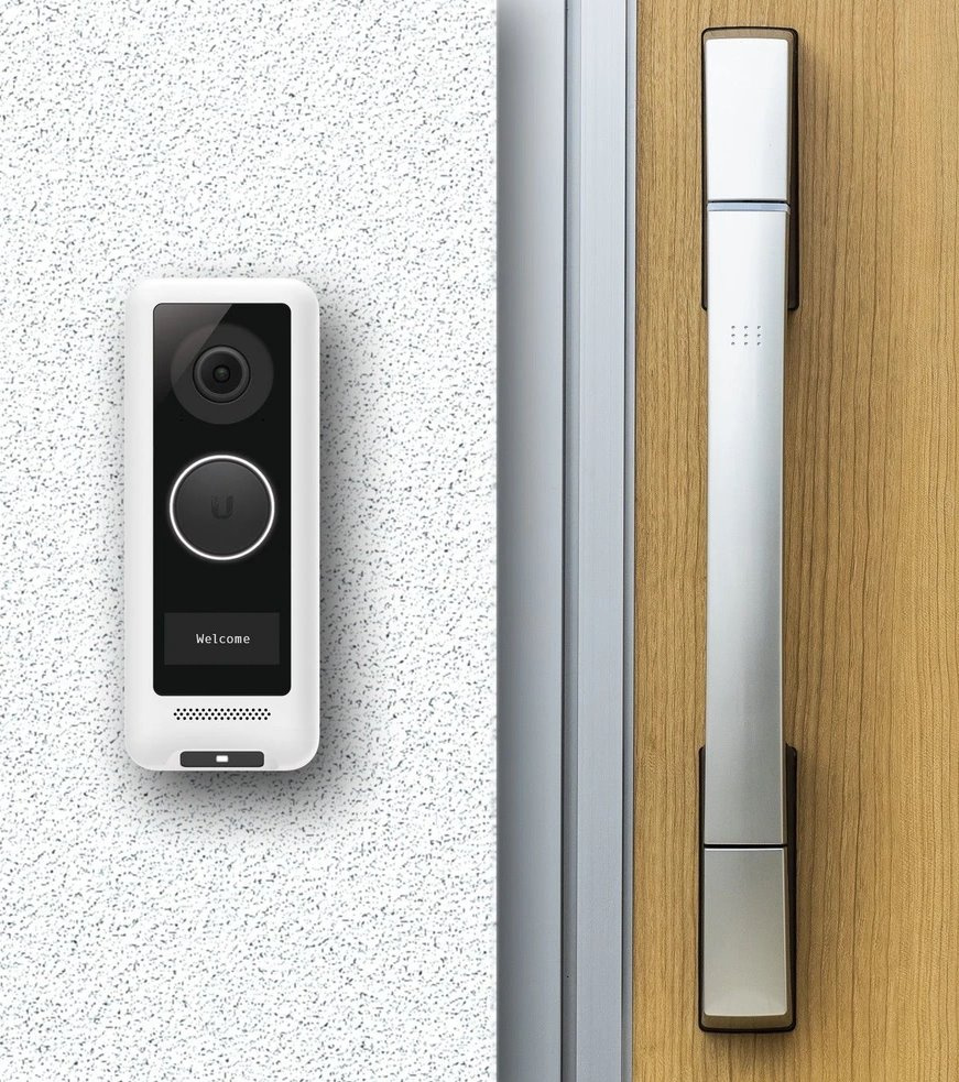 UniFi Protect G4 Doorbell je video zvonek s Wi-Fi, PIR senzorem, malým vestavěným displejem, mikrofonem a reproduktorem pro obousměrnou zvukovou komunikaci v reálném čase.