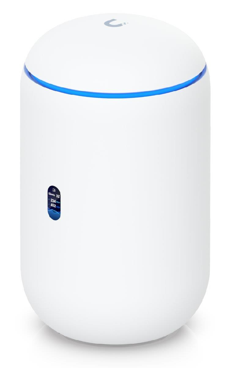 Popis produktu UniFi Dream Router 7 od Ubiquiti je řešení sítě vše v jednom pro domácnosti a malé kanceláře. Jedná se o výkonné zařízení se 4-jádrovým CPU, 3 GB RAM, které kombinuje Router, WiFi 7 AP, 3-portový 2.5G switch s možností 802.3af PoE na jednom portu. Pro připojení do sítě disponuje 2.5G WAN portem a 10G SFP+ WAN portem. Router má předinstalované aplikace UniFi Network/Protect/Access/Talk a microSD slot, který slouží jako uložiště pro kamerové záznamy (64GB SD karta součástí balení). Pomocí UniFi network dokáže spravovat dalších 30+ zařízení z řady UniFi a pro UniFi protect umožňuje nahrávat 1x 4K kameru, 2x 2K kamery nebo 5x HD kamer. Třešničkou na dortu tohoto elegantního routeru je malý displej pro zobrazení aktuálního síťového provozu. Vestavěné Tri-Band WiFi 7 AP podporuje nejnovější standard 802.11be s modulační rychlostí až 5,7 Gbps v 6GHz pásmu, až 4,3 Gbps v 5GHz pásmu a až 688 Mbps ve 2.4 GHz pásmu a šifrování WPA3. Klíčové vlastnosti • Tri-Band WiFi 7 AP s podporou 802.11a/b/g/n/ac/ac/ax/be • 5,7 Gbps (6GHz) + 4,3 Gbps (5GHz) + 688 Mbps (2,4GHz) • (1) 10G SFP+ WAN + (1) 2.5G WAN + (3) 2.5G LAN - 1 port s podporou PoE-out (802.3af) • PoE budget 15,4W • Slot na MicroSD karty pro ukládání záznamů z UniFi Protect (64GB SD karta součástí balení) • 0.96" LCD barevný displej pro zobrazení síťového provozu a vytížení • Předinstalované UniFi aplikace Network, Protect, Access, Talk, Connect Obsah balení • Zařízení • 64GB MicroSD karta • Napájecí kabel • Nástroj na vyjmutí microSD karty Technické parametry Bezdrátové vlastnosti Bezdrátové frekvence:2.4 + 5 + 6 GHz (triple band) WiFi standardy:802.11n, 802.11a, 802.11ac, 802.11b/g, 802.11ax, 802.11be MU-MIMO:Ano Přenosová rychlost - 5GHz [Mb/s]:4300 Přenosová rychlost - 2.4GHz [Mb/s]:688 Přenosová rychlost - 6GHz [Mb/s]:5700 Vysílací výkon 2.4GHz [dBm]:23 Vysílací výkon 5GHz [dBm]:26 Vysílací výkon 6GHz [dBm]:24 Šifrování:WPA, WPA2, WPA3 2.4GHz MIMO:2 x 2 5GHz MIMO:2 x 2 6GHz MIMO:2 x 2 Typ antény:Vestavěná Roaming:Ano Zisk antény [dBi]:6, 7, 5 Konektory a rozhraní Rychlosti WAN:(1) 10/100/1000/2500Mbps + (1) 10Gbps SFP+ Možnost více WAN:Ano Rychlost LAN:(3) 100/1000/2500Mbps Gigabit LAN:Ano Optické rozhraní:(1) 10Gbps Ostatní:LCD displej Napájení Typ napájení:Ze sítě (230V) Typy PoE:PoE-Out (pouze) Podporované PoE-Out standardy:802.3af Počet PoE Out portů:1 Max. spotřeba energie [W]:26 Fyzické charakteristiky Provedení:Desktop Použití:Vnitřní Šasi:Plastové Tlačítka:Reset Provozní teplota [°C]:-10 až 40 Hmotnost [g]:1100 Šířka [mm]:110 Výška [mm]:184 Hloubka [mm]:110 Hardware CPU:ARM Cortex-A53 Frekvence CPU [MHz]:1500 Počet CPU jader:4 RAM [MB]:3072 Software Podporované VPN:L2TP, IPSec, OpenVPN, WireGuard Předinstalovaný kontroller:UniFi Network, UniFi Protect, UniFi Talk, UniFi Access, UniFi Connect Operační mód:AP Router Management:UniFi Network, Mobilní aplikace Podpora IPv6:Ano.