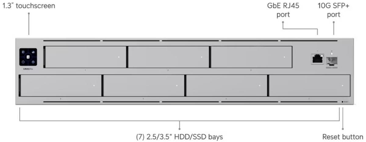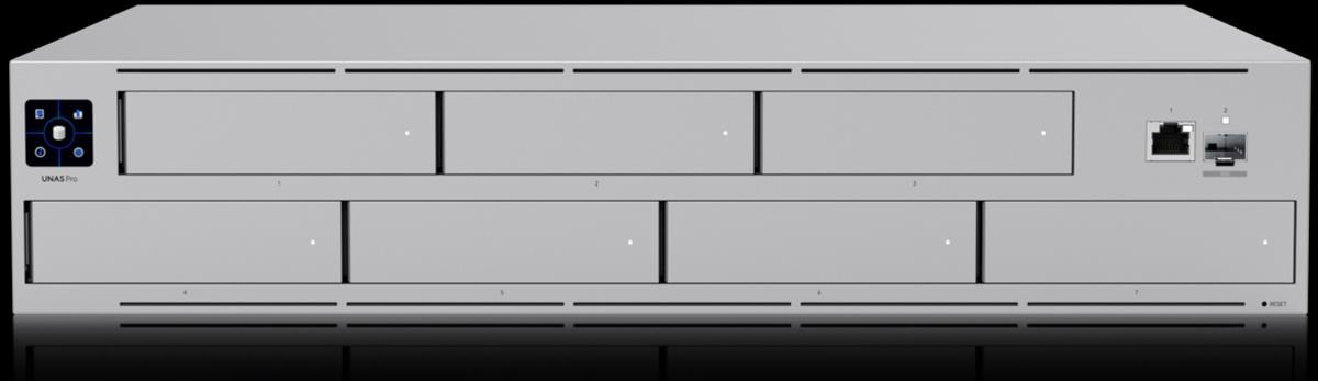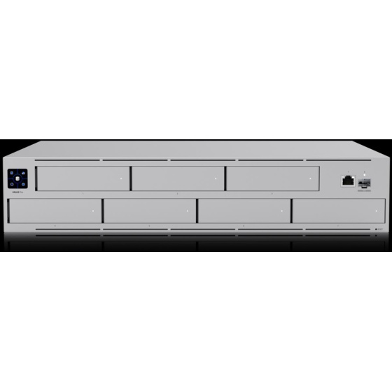 Popis produktu NAS pro montáž do 2U racku disponující 7x 2,5/3,5" pozicemi pro disk, jedním Gbe RJ-45 portem a jedním 10G SFP+ portem pro uplink. Vhodný pro ukládání velkých souborů. Poháněn je čtřjádrovým procesorem ARM Crotex-A57 pracující na frekvenci 1,7 GHz, který je doplněný o 8 GB operační paměti. • (1) 10G SFP+ uplink a (1) GbE RJ-45 port • Ochrana dat pomocí technologie úložiště RAID • Připraveno na zálohování napájení UniFi • 1,3" dotykový displej pro správu • Podpora bluetooth 4.1 • Max. příkon 135 W Obsah balení • Zařízení • Napájecí kabel • Příslušenství pro montáž do racku Technické parametry Konektory a rozhraní Počet slotů pro HDD:7 Rychlost LAN:(1) 10/100/1000Mbps Gigabit LAN:Ano Optické rozhraní:(1) 1/10Gbps Ostatní:Dotykový displej, Bluetooth Napájení Typ napájení:Ze sítě (230V), UniFi SmartPower RPS Redundantní napájení:Ano Max. spotřeba energie [W]:160 Napájení přes konektor/svorkovnici:230V AC Fyzické charakteristiky Provedení:Rackmount Materiál:Zinek, Ocel Počet "U" pozic:2 Provozní teplota [°C]:-5 až 40 Hmotnost [kg]:9,5 Šířka [mm]:442 Výška [mm]:87 Hloubka [mm]:325 Hardware Podporovaná kapacita HDD [TB]:16 CPU:ARM Cortex-A57 Software Úroveň RAID:1 - mirroring, 5 - striping, 10 - mirroring.