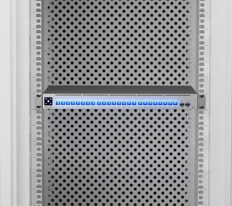 Popis produktu Ubiquiti USW Pro Max 24 je kvalitní switch. K dispozici má 8 LAN portů s rychlostí až 2,5 Gb/s. Ostatních 16 portů má rychlost 1 Gb/s. K dispozici jsou také 2 SFP+ porty o rychlosti až 10 Gb/s. Switch lze nastavit pomocí UniFi Controlleru. Je vybaven také dotykovým displejem s ovládacími prvky. Na zadní straně, kromě běžného napájení, najdeme i záložní DC napájení, které se využije například při výpadku proudu. Klíčové vlastnosti • Záložní DC napájení • Možnost nastavení přes UniFi Controller • Vysoká rychlost připojení - 8 LAN portů o rychlosti 2,5 Gb/s a 16 LAN portů o rychlosti 1 Gb/s • 2 SFP+ porty o rychlosti až 10 Gb/s Obsah balení • Zařízení • Napájecí kabel • Montážní sada do racku Technické parametry Konektory a rozhraní Rychlost LAN:(8) 100/1000/2500 Mbps + (16) 10/100/1000 Mbps Optické rozhraní:(2) 10Gbps Ostatní:Dotykový displej Napájení Typ napájení:Ze sítě (230V) Redundantní napájení:Ano Max. spotřeba energie [W]:50 Fyzické charakteristiky Provedení:Rackmount Šasi:Kovové Tlačítka:Reset Provozní teplota [°C]:-5 až 40 Šířka [mm]:443 Výška [mm]:48 Hloubka [mm]:325 Obecné Rychlost přepínání [Gbps]:112 Software Management:UniFi controller Funkce:L3.