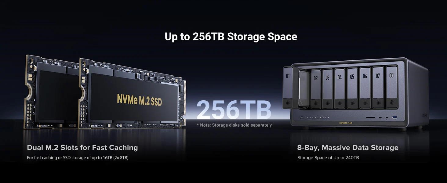 Maximálna kapacita úložiska196TB (6x 30TB + 2x 8TB)