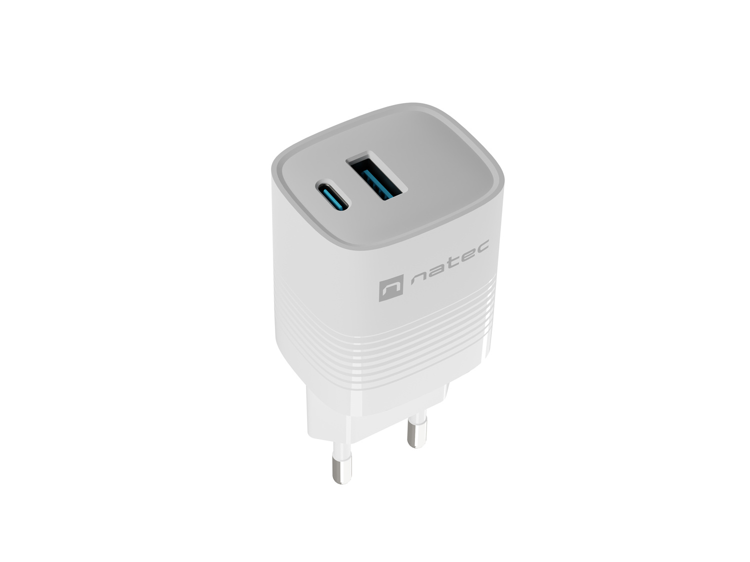 Popis Univerzálna USB nabíjačka Natec RIBERA GaN 30W, 1X USB-A, 1X USB-C, Biela