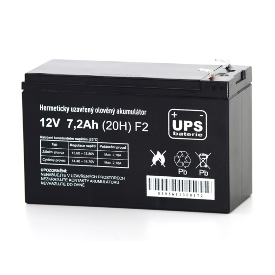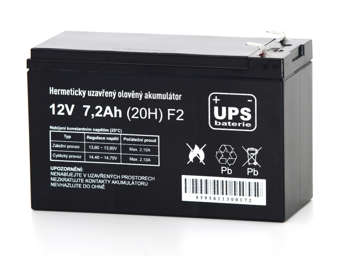 Náhradní baterie pro UPS, EZS, EPS a jiné elektronické systémy.Napětí: 12VKapacita: 7,2AhPřipojení: