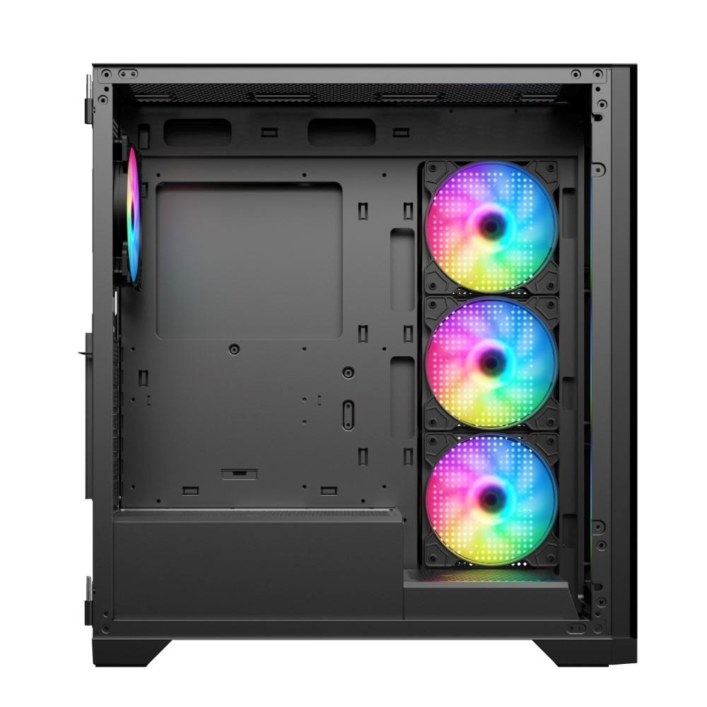 Popis VeinX case GL29AL-BK, ATX, Průhledná bočnice, 4x 120mm ARGB Fan, ARGB Hub, Černá
