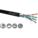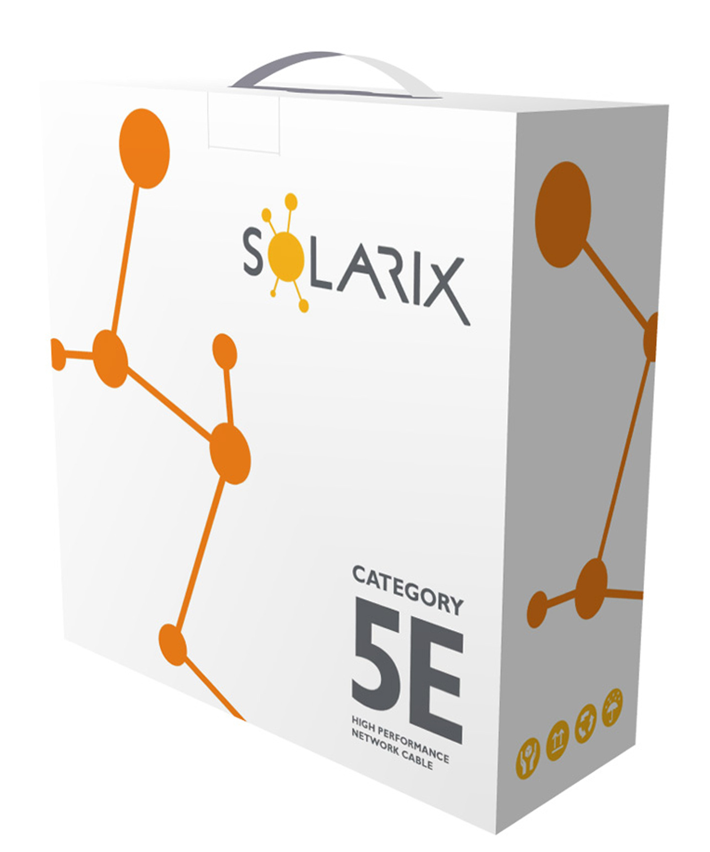 Instalační kabel Solarix s označením SXKD-5E-FTP-PE je spolehlivý venkovní stíněný kabel kategorie 5E, který je určený pro provoz ethernetových protokolů, včetně 2.5GBASE-T a 5GBASE-T*. Konstrukce kabelu je F/UTP, typ pláště UV stabilní PE s třídou reakce na oheň Fca a stupněm krytí IP67. Vodiče kabelu jsou vyrobeny z kvalitního měděného drátu s čistotou mědi 99,97 %. Kabel bez problémů splňuje požadavky z mezinárodních standardů ISO/IEC 11801, EN 50173 a ANSI/TIA 568.2-D. Stejně jako ostatní kabely Solarix, je i kabel SXKD-5E-FTP-PE značen metráží po 1 m v rozsahu od 0 do 100 m. Kabel je dodáván ve vysoce odolném třívrstvém leštěném kartónovém boxu (vždy barevně odlišeném podle typu kabelu), na kterém jsou uvedeny všechny nezbytné produktové informace, včetně čárových kódů, výrobní šarže, popisu a nejdůležitějších technických parametrů. Tento kabel není určen pro trvalé uložení do vody ani do země bez odpovídající řádné ochrany.