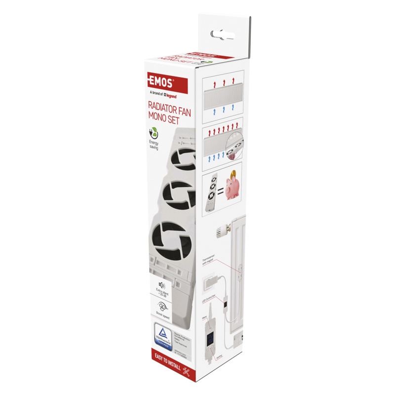 Značka EMOS Objednací číslo P56PR1 Produktové číslo 2107561000 EAN 8592920138021 počet ventilátorů v balení 1 ventilátor průtok vzduchu 36 m3/hod pro každý ventilátor hlučnost <20 dB rychlost ventilátoru 1 800 RPM (defaultní nastavení) zapnuto/vypnuto ON 28°C – 40°C / OFF 25°C měření teploty 25 °C až 70 °C, rozlišení 1 °C nastavení teploty 28 °C až 70 °C, po 1 °C spotřeba při provozu 0,8 W (1 800 RPM); 1,4 W (2 400 RPM) spotřeba v pohotovostním režimu 0,03 W materiál tepelně odolný PC s ABS barva bílá napájení 5 V DC/2 000 mA (součástí balení) rozměr 25 × 70 × 345 mm záruční doba 2 roky prodejní obal 1 ks, papírová krabička
