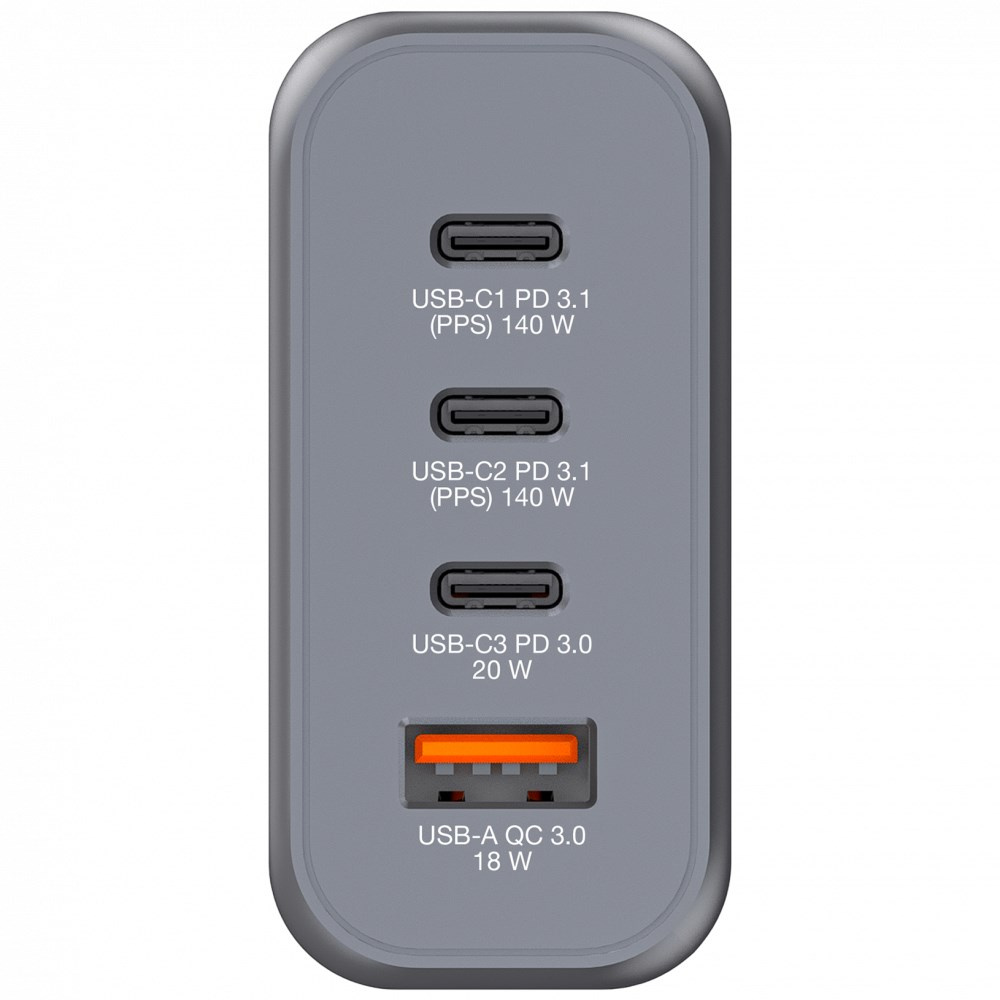Verbatim GaN nabíjačka do siete o výkone 200 W v elegantnom dizajne, ktorý sa hravo zmestí do dlane, kombinuje dva porty USB-C PD 100 W, jeden port USB-C PD 65 W a jeden port USB-A QC 3.0. Ideálna do kancelárie, pre domáce použitie alebo na cesty, kde dodá energiu vášmu notebooku, tabletu, chytrému telefónu, herným a mnohým ďalším zariadeniam.