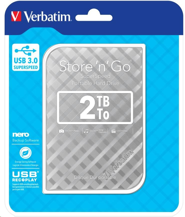 Popis VERBATIM HDD 2.5" 2TB prenosný pevný disk Store 'n' Go USB 3.0, Silver GEN II