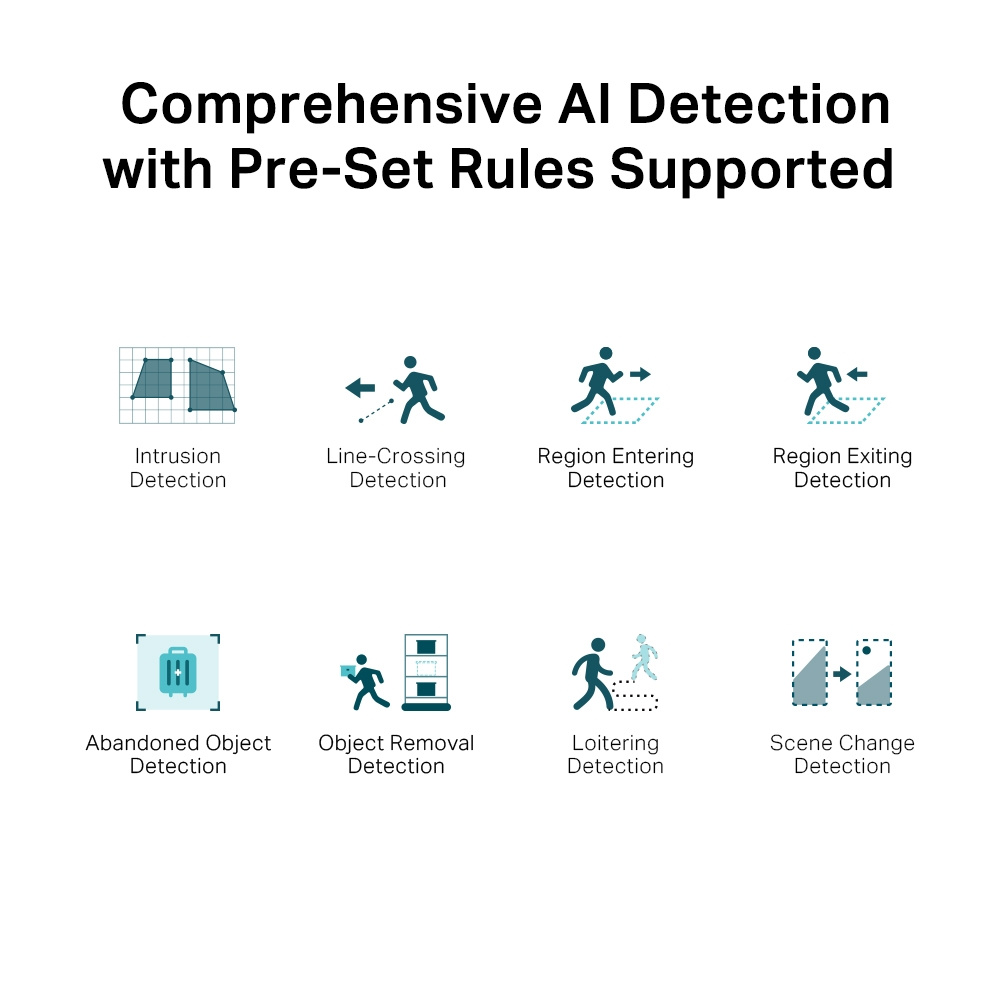 Kamera VIGI s podporou algoritmů umělé inteligence nabízí inteligentnější detekci. Budete dostávat upozornění, když někdo překročí hranici, vstoupí do nastavené oblasti, překáží kameře nebo odstraní/opustí objekty.