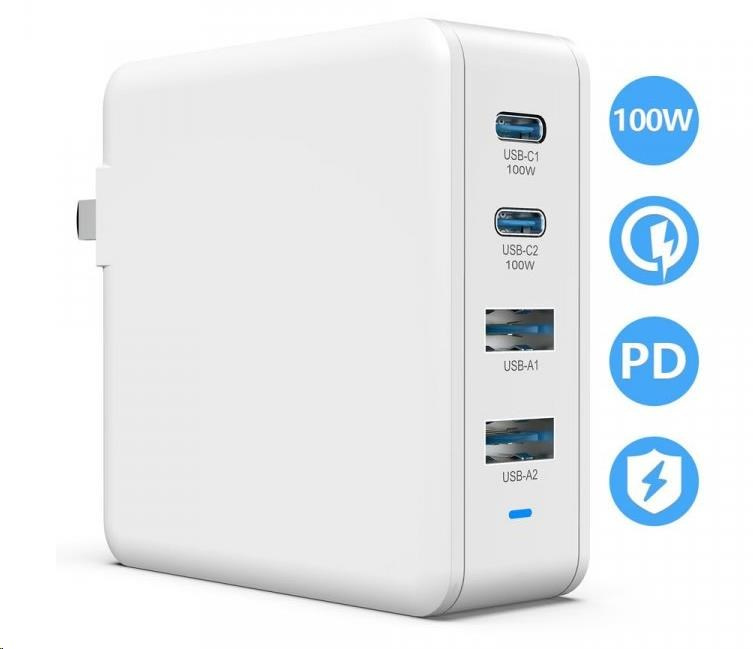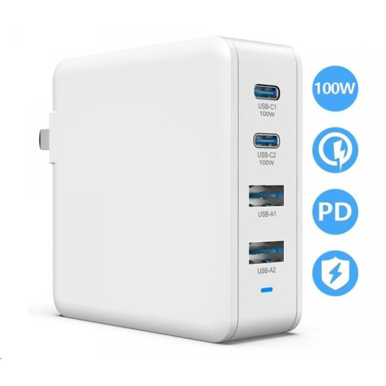 Rýchlonabíjacia, sieťová USB stanica až pre 4 USB zariadenia (2x USB-C, 2x USB-A) s celkovým výkonom 100W s podporou technológií QC4+ a PD3.0. Elektronika obsahuje inteligentný čip na identifikáciu zariadenia a optimalizáciu nabíjacieho prúdu a napätia.