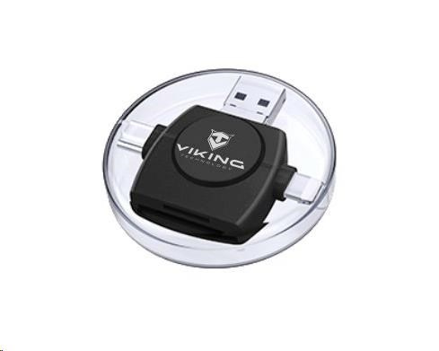 Čítačka pamäťových kariet Viking OTG SD a Micro SD 4v1 s konektorom APPLE Lightning / Micro USB / USB 3.0 / USB-C, čierna