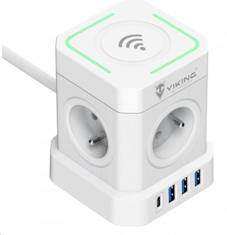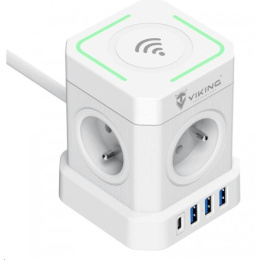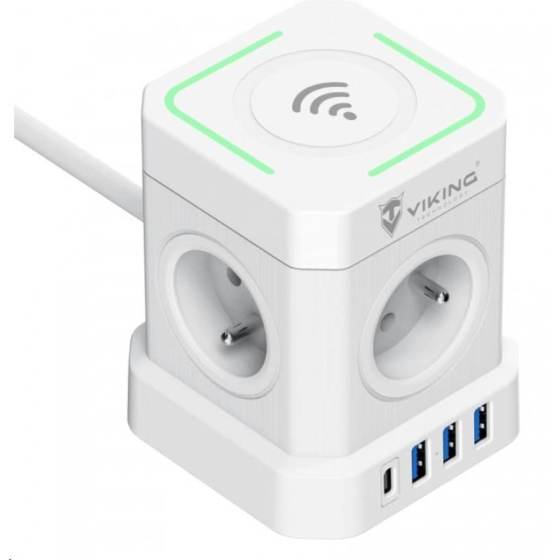 Sieťový adaptér Viking ACT44W prináša multifunkčné riešenie pre vaše elektronické zariadenia. So štyrmi štandardnými výstupmi AC (230V), tromi portami USB-A (5V/2.4A), a jedným portom USB-C PD (20W max) s podporou rýchlonabíjania, tento adaptér umožňuje nabíjať až 9 zariadení naraz.