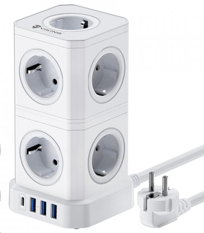 Predstavujeme Viking ACT94 - revolučnú elektrickú zásuvku, ktorá rozširuje štandardnú zásuvku o ďalších 9 x AC 230V, 3 x USB-A a 1x USB-C výstupy.