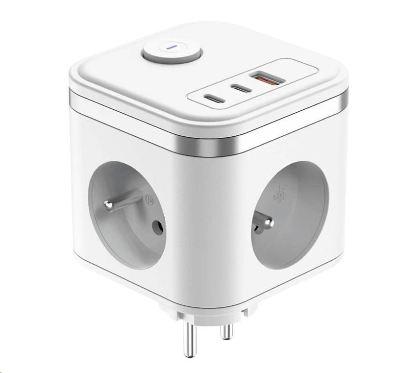 Síťový adaptér VIKING Y33 kombinuje 3 AC výstupy a 3 USB porty, čo umožňuje nabíjanie až 6 zariadení súčasne. Vďaka kompaktnému dizajnu a tlačidlu ON/OFF je používanie jednoduché a prehľadné.