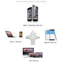 Díky čtyřem nejpoužívanějším konektorům můžete jednoduše přenášet a zálohovat fotografie, hudbu, filmy i další soubory mezi zařízeními Apple, Android, PC a notebooky. Tento praktický flash disk vám zajistí pohodlný a rychlý přístup ke všem datům kdykoliv a kdekoliv.