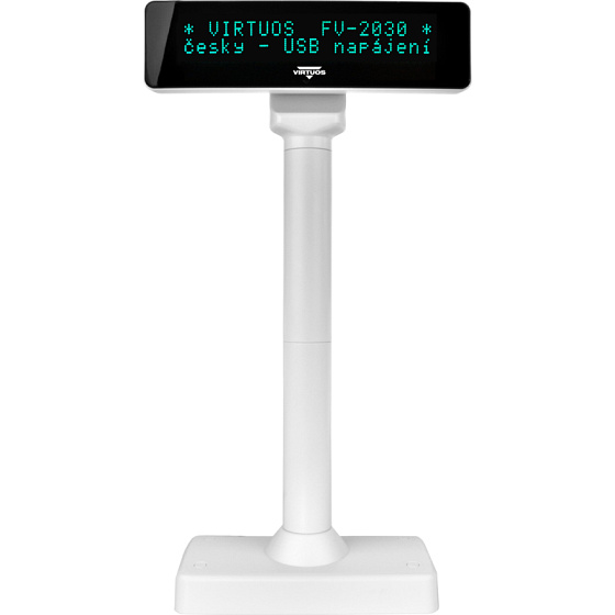VFD zákaznický displej Virtuos FV-2030W, 2 x 20 znaků 9 mm, rozhraní a napájení z USB, bílý