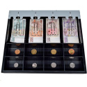 | Prihrádky | 4× na bankovky 8× na mince - vyberateľný mincovník |