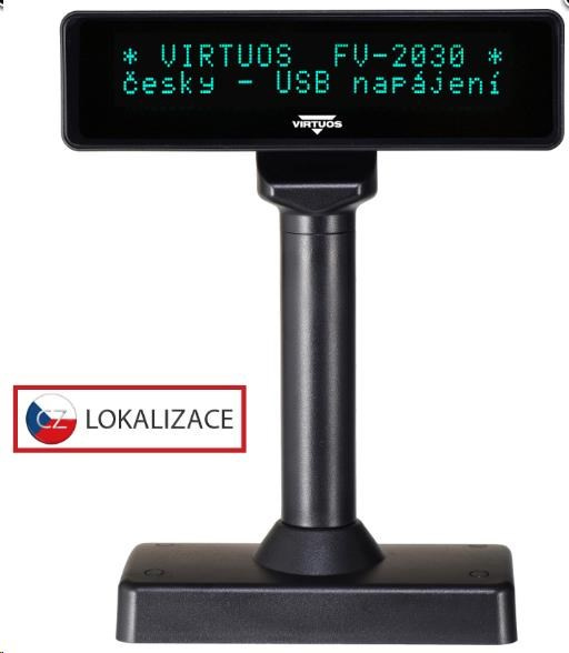 Virtuos VFD zákaznícky displej Virtuos FV-2030B 2x20 9mm, USB, čierny