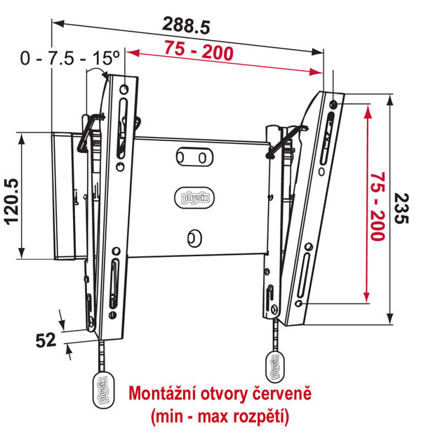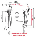 Specifikace výrobku: *nosnost 20 kg *uchycení 200 x 200 *úhlopříčka cm 48 - 94 *úhlopříčka palce 19 - 37 '' *náklon 15° *materiál kov *barva černá