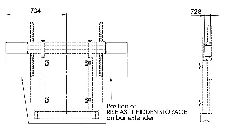 S prodlužovací lištou RISE A321 si usnadníte instalaci a přístupnost při montáži nástěnného výtahu. Slouží k uchycení úložného prostoru A311 na bok horizontálního adaptéru elektrických liftů RISE. Díky této prodlužovací liště můžete připevnit více skrytých úložných jednotek RISE A311 ke stojanu - z každé strany jednu a další na záda liftu.