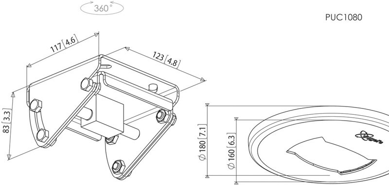 PUC 1070 Connect-it Large Stropní úchyt pro šikmé stropy *možnost náklonu - vhodný pro šikmé