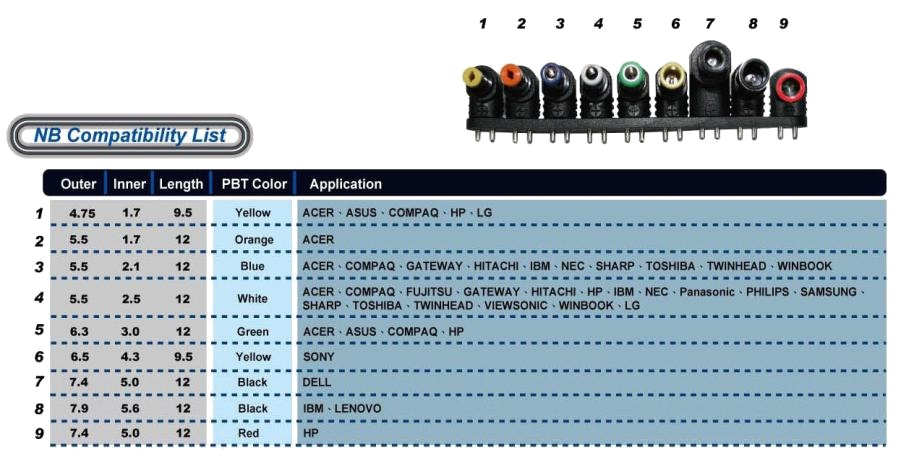 FSP se zajímá a produkuje ekologicky šetrné výrobky. V tomto případě tak nabízí jednotlivé koncovky pro své ekologicky šetrné napájecí adaptéry FSP/Fortron. Je to ta nejlepší volba, pokud potřebujete pouze jednu nebo několik konkrétních koncovek. * vyměnitelná koncovka pro adaptéry FSP/Fortron * koncovka pro notebook (Samsung) * retailové balení v sáčku * číslo koncovky: 10 * barva: žlutá * rozměr vnější: 4,75 * rozměr vnitřní: 1,7 * délka: 9,5