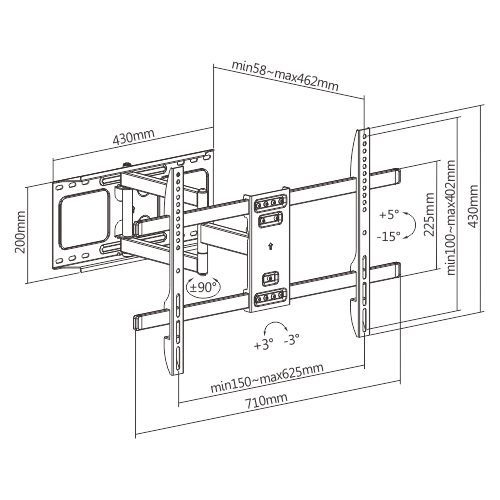 Výsuvný držiak Brateck LPA69-463D pre TV 32"-70" 45kg polohovateľný nástenný