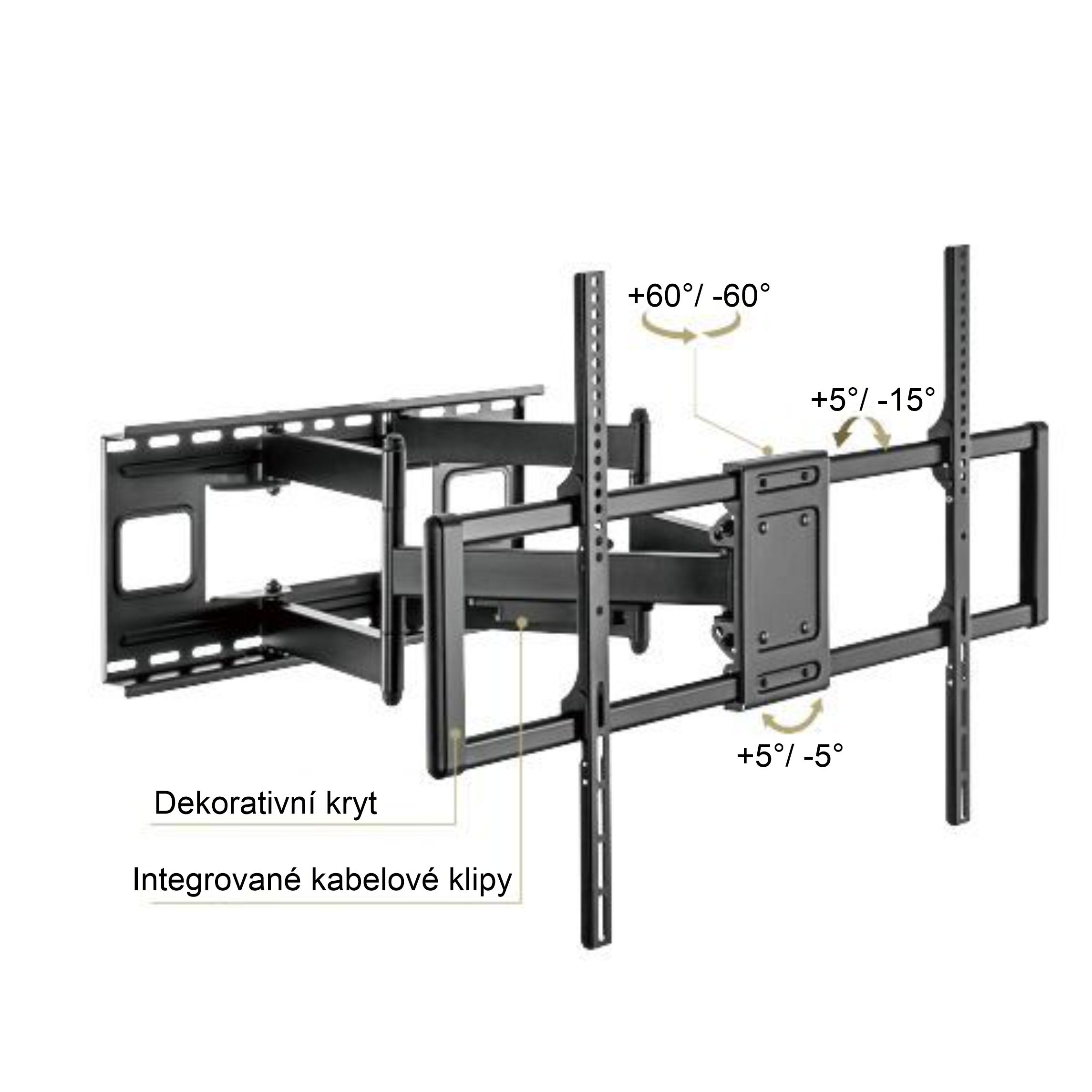 Popis Výsuvný držiak Brateck LPA77-696 pre TV 60"-120" 120kg polohovateľný nástenný Heavy Duty