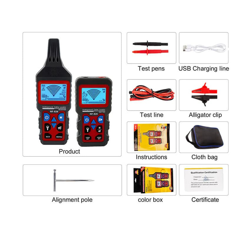 W-Star Hľadačka káblov WSNF820, 0-400V traser káblov, až 1km, 0-2m