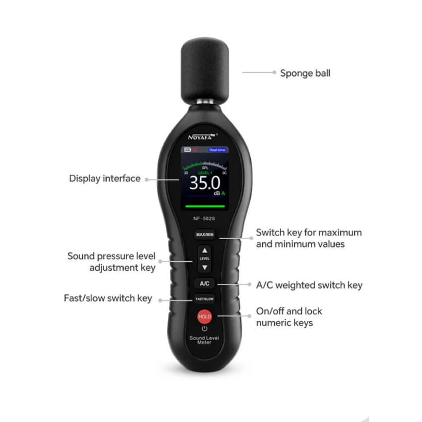 Popis W-Star Hlukomer WSNF562S, LCD, Min, Max, 30-135dB, dBA, dBC