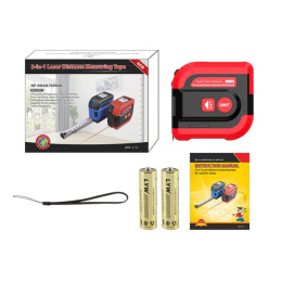 WSNF2240 laser metr 40m a svinovací metr 5m, délka, výška, dopočet plochy a objemu, dobře čitelný displej, červený laser. Technické parametry: Model: NF-2240 Rozsah měření: 0,05 - 40m Přesnost měření: ±2mm Typ displeje: FSTN LCD obrazovka Možnosti jednotek: m/ft/in Nastavení benchmarku: Ano Nepřetržité měření: Ano Měření plochy: Ano Měření objemu: Ano Zvukový signál: Ano Rozsah svinovacího metru: 5m Automatické vypnutí laseru: 30s Čas automatického vypnutí: 2 minuty Napájení: baterie AAA 1,5V (není součástí dodávky) Pracovní teplota: 0 °C - 40 °C Teplota skladování: -10 °C - 60 °C Úroveň ochrany: IP54 Rozměry: 80 x 42 x 78 mm Hmotnost: 240 g