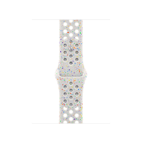 Tenhle sportovní řemínek Nike má vylisované otvory pro větší vzdušnost, je odolný, pevný a přitom krásně poddajný. Obsahuje barevné vločky vytvářející náhodné vzory, takže každý řemínek je originál. Jeho hladký, hutný materiál se elegantně ovine kolem zápěstí a příjemně sedí. A nově se zapíná na hliníkový kolíček s matným povrchem.