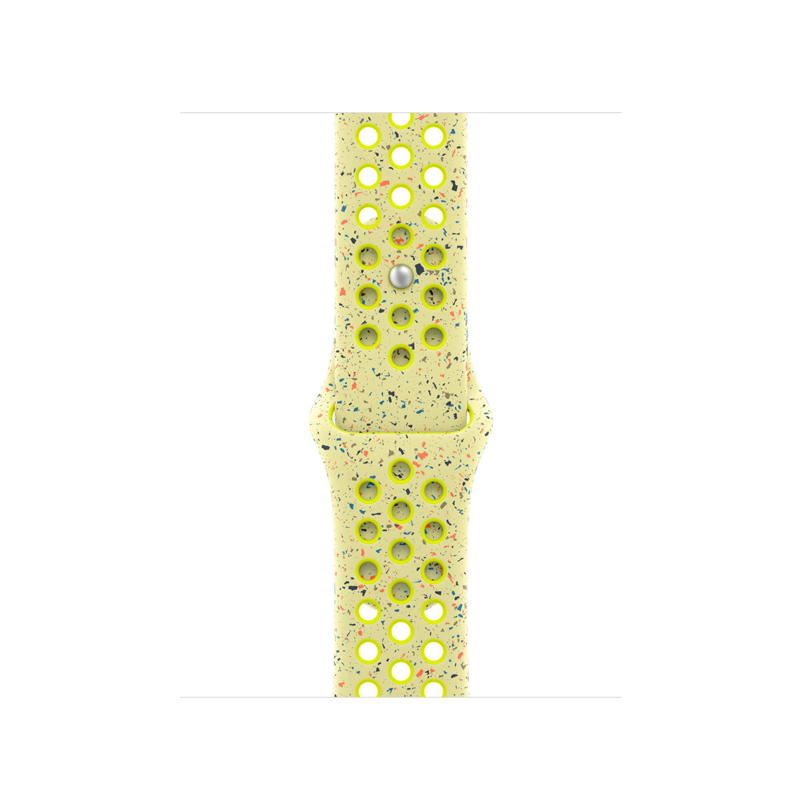 Tenhle sportovní řemínek Nike má vylisované otvory pro větší vzdušnost, je odolný, pevný a přitom překvapivě poddajný. Obsahuje barevné vločky, které tvoří náhodné vzory, takže každý řemínek je originál. Jeho hladký, hutný materiál se elegantně ovine kolem zápěstí a příjemně sedí. A zapíná se na hliníkový kolíček s matným povrchem, do kterého je pečlivě vygravírované logo Nike Run.