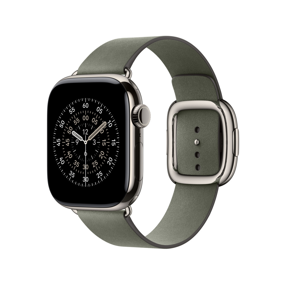 Řemínek s moderní přezkou je precizně ušitý z tkaniny FineWoven z odolného mikrokepru, který na omak působí jako měkký semiš. I když přezka vypadá masivně, ve skutečnosti jde o dvoudílné magnetické zapínání, které se příjemně zavírá. Přidaná vnitřní vrstva z tkaniny Vectran zvyšuje tuhost a odolnost proti vytahání.