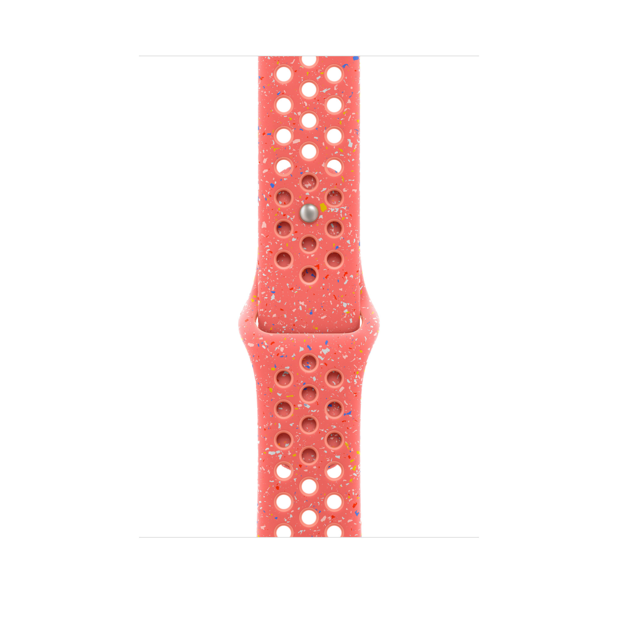 Tenhle sportovní řemínek Nike má vylisované otvory pro větší vzdušnost, je odolný, pevný a přitom krásně poddajný. Obsahuje barevné vločky vytvářející náhodné vzory, takže každý řemínek je originál. Jeho hladký, hutný materiál se elegantně ovine kolem zápěstí a příjemně sedí. A nově se zapíná na hliníkový kolíček s matným povrchem.