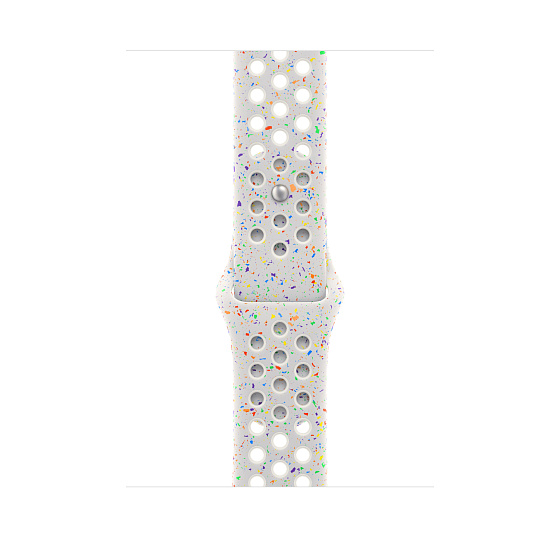 Tenhle sportovní řemínek Nike má vylisované otvory pro větší vzdušnost, je odolný, pevný a přitom krásně poddajný. Obsahuje barevné vločky vytvářející náhodné vzory, takže každý řemínek je originál. Jeho hladký, hutný materiál se elegantně ovine kolem zápěstí a příjemně sedí. A nově se zapíná na hliníkový kolíček s matným povrchem.