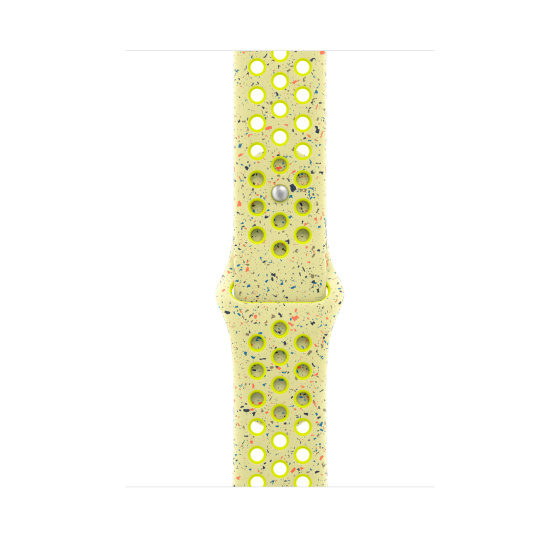 Tenhle sportovní řemínek Nike má vylisované otvory pro větší vzdušnost, je odolný, pevný a přitom krásně poddajný. Obsahuje barevné vločky vytvářející náhodné vzory, takže každý řemínek je originál. Jeho hladký, hutný materiál se elegantně ovine kolem zápěstí a příjemně sedí. A nově se zapíná na hliníkový kolíček s matným povrchem.