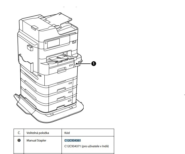 Umožňuje snadno svorkovat tak, že vložíte papír, který chcete svorkovat Před manipulací si prostudujte podrobnosti v dokumentaci k vaší tiskárně. Kompatibilní s: WorkForce Pro RIPS WF-C879R